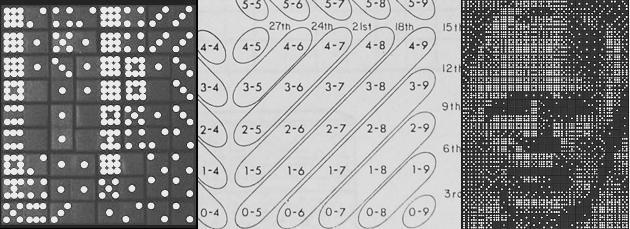 lossless when complete. Representation of Designs. 4,398,890. Processes for making pictures out of tiles with a multiplicity of patterns, particularly dominoes. Computer Apparatus for Brush Styled Writing. 5,155,813 (with Karen Donoghue) Real time interactive means for brush or pen calligraphy. Method for Black and White Image Reduction Based upon averaging